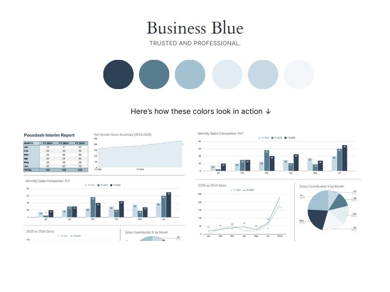 • Reinforces branding & professionalism: Templates aligned with your brand colours create consistency across reports, dashboards, and presentations.