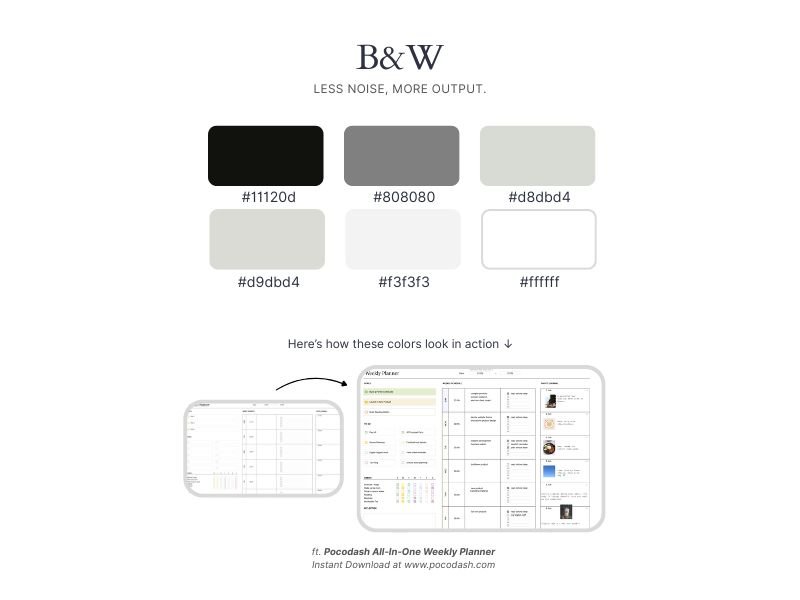 Clean, minimalist, and high contrast, the Black & White Palette is all about clarity. It’s ideal for analytics-focused sheets or templates that prioritize data over decoration.
