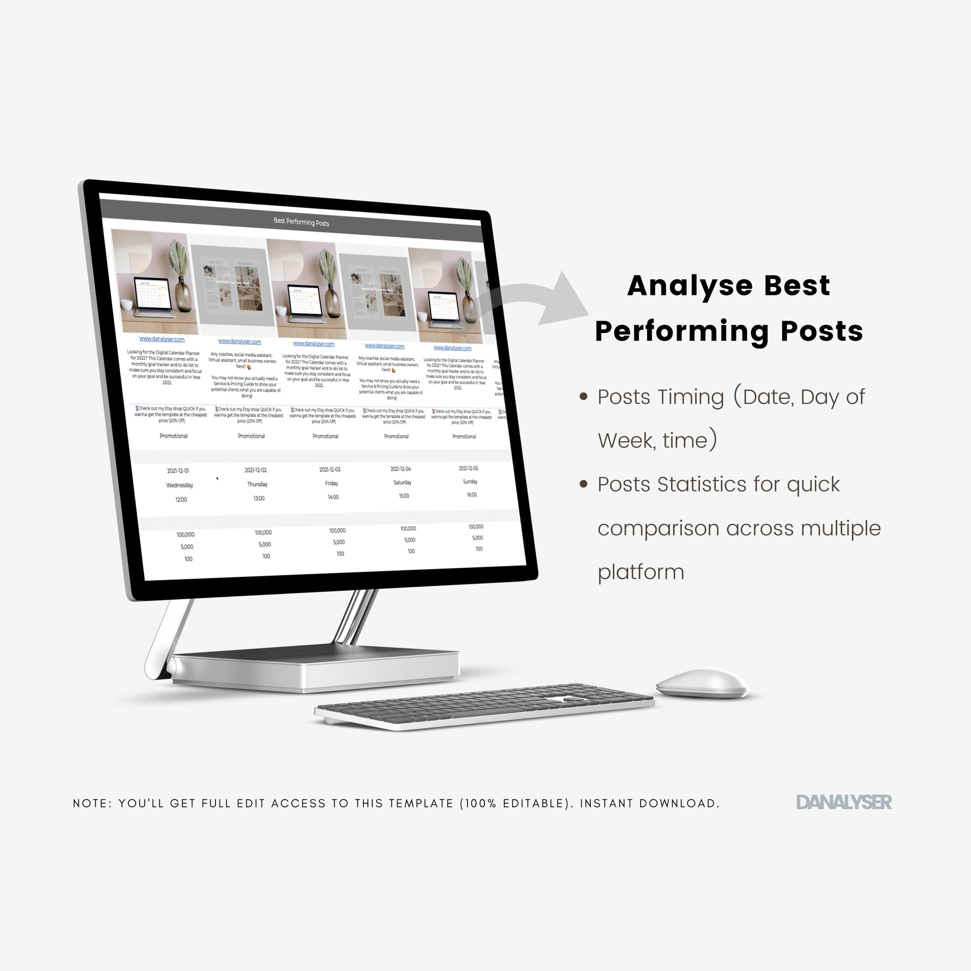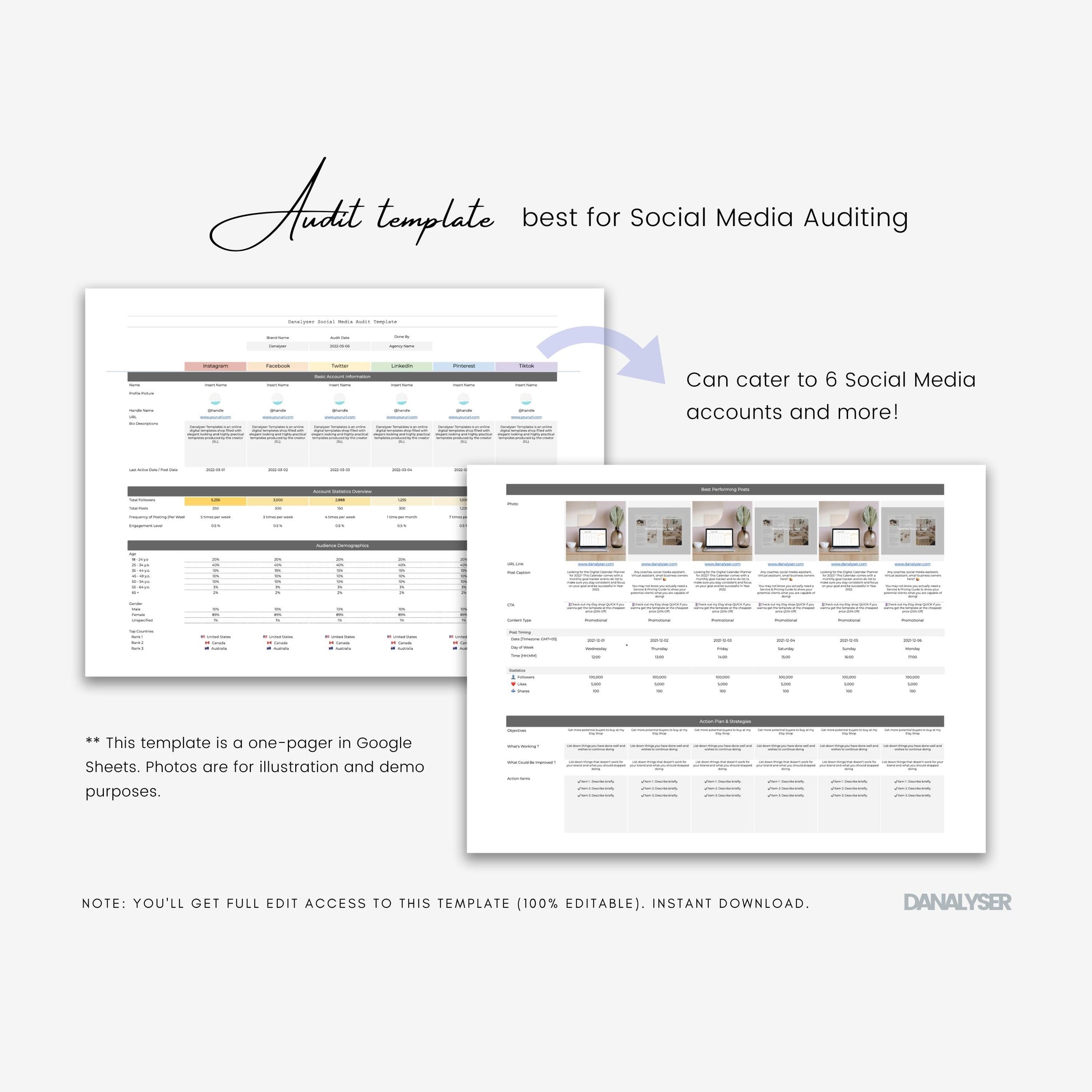 This Social Audit Template is 100 % editable and customizable in Google Sheets. You’ll get full edit access to the template once purchased. You can: