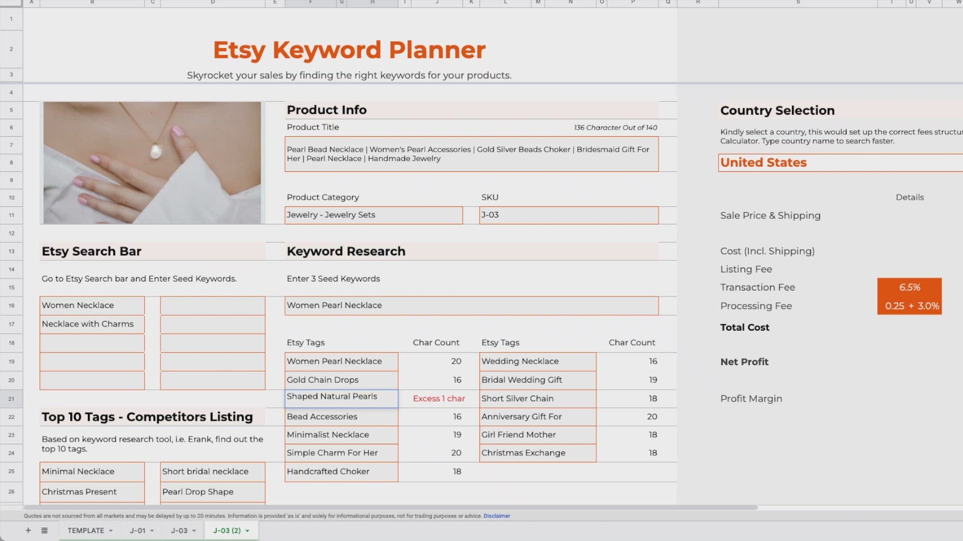 This Etsy Keyword Planner is designed to make your keyword research process organised and efficient so you can save the time for something you love!