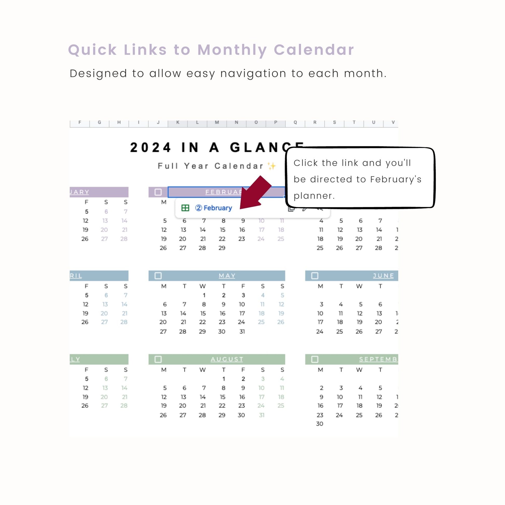 ✓ Home page with 12 months in a glance and clickable link for quick access to monthly calendar