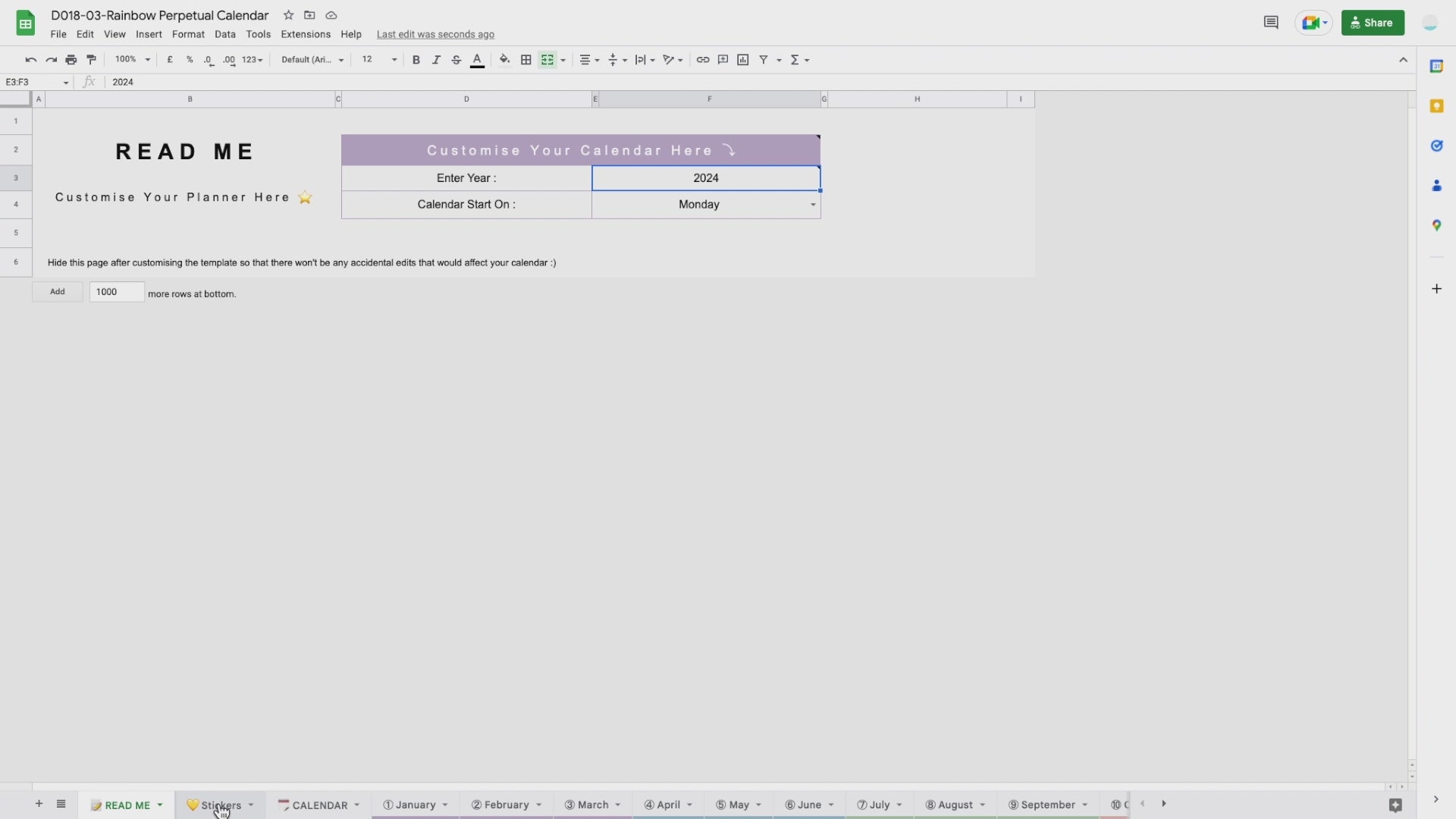 1) Go to Read Me Page and enter the year and start day (i.e. Mon or Sun)