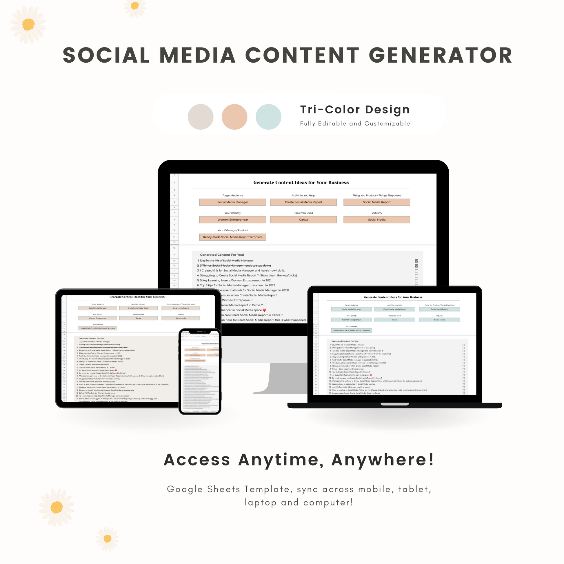 ✓ Google Sheets Templates with 3 tabs (Same template but different colors)